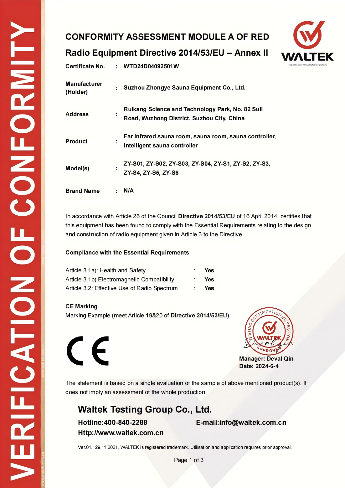1 лице далеку инфрацрвена сауна--- Квалификација на производи