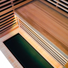 Исклучителна карактеристика на сауната е нејзиниот двоен систем за греење. Далеку инфрацрвените грејни елементи овозможуваат длабока пенетрација, загревајќи го телото од внатре кон надвор за да се промовира циркулацијата на крвта и детоксикацијата. Помошниот систем за греење обезбедува брз пораст на температурата, овозможувајќи и на сауната да ја достигне саканата температура за кратко време. Оваа комбинација не само што ја подобрува ефикасноста на греењето, туку и одржува рамномерна распределба на температурата, елиминирајќи ги студените точки.
