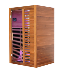Оваа сауна со двојно загревање со далечно инфрацрвена боја, направена од канадски Хемлок од степен А, е идеален избор за добро здравје во домот. Доаѓа со вградена виолетова светлина и опционални RGB светла што ја менуваат бојата, комбинирајќи ефикасни перформанси за греење со удобен визуелен амбиент. Издржливата конструкција на Canadian Hemlock обезбедува стабилна работа и долг работен век, што ја прави совршена за секојдневна релаксација и детоксикација.