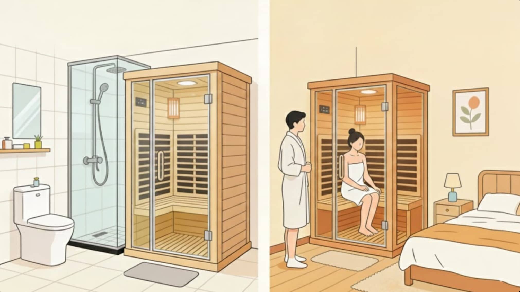 Двата типа на сауни не се исклучуваат меѓусебно и можат да се користат во комбинација според годишните времиња - користете сауни со далечно инфрацрвена светлина во лето (суви и незадушени, избегнувајќи суперпозиција на влажна топлина); користете парни сауни во зима (топли и навлажнувачки). Семејствата со услови може да усвојат план „делумно реновирање + флексибилно дополнување“: инсталирајте модул за сауна со пареа во бањата и поставете мала сауна со далеку инфрацрвена светлина во спалната/балконот за да се максимизира покриеноста на здравствените потреби.