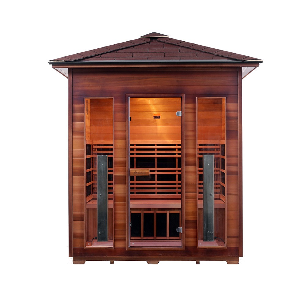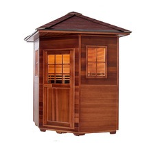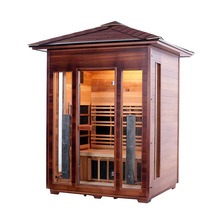 Оваа сауна на отворено е направена од канадски западен црвен кедар или канадски Хемлок. Дрвото може да се пофали со отпорност на корозија и влага, како и структурна стабилност. Опремен со технологија за загревање со јаглеродни влакна со далеку инфрацрвени влакна, брзо се загрева и рамномерно ја дистрибуира топлината. Погоден за надворешни средини како што се дворови, балкони, градини на вили, области покрај базените и одморалишта.